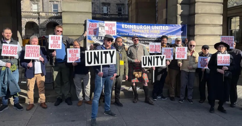 The demonstrators, organised under Edinburgh United Private Hire (EUPH), claim that crumbling road surfaces and strict rules banning them from bus lanes are making it nearly impossible to earn a living.